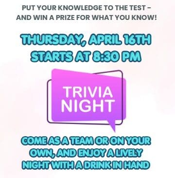 Join us at the restaurant for our first ever trivia night!