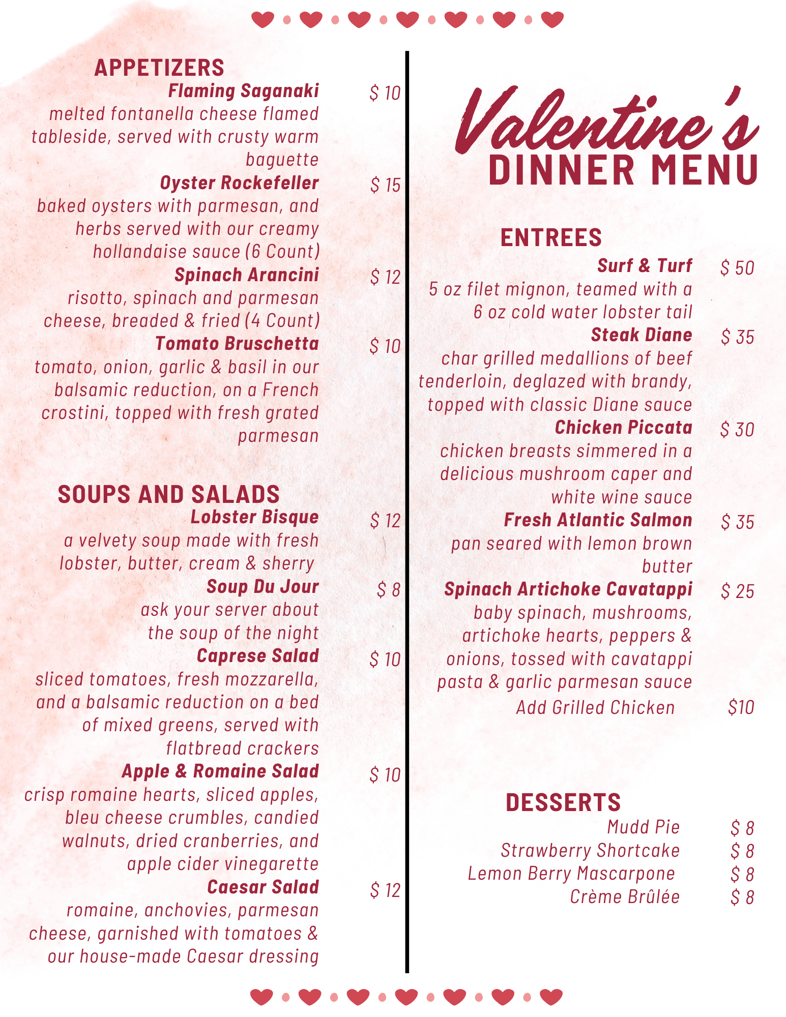 The menu for our romantic dinner is provided below, so you can plan your taste adventure!
